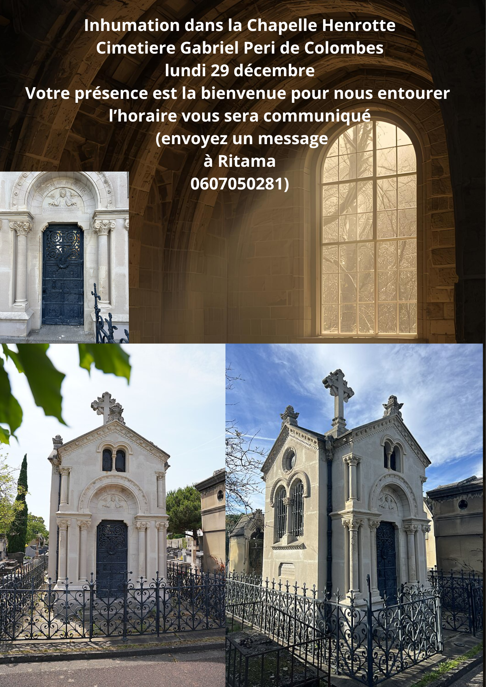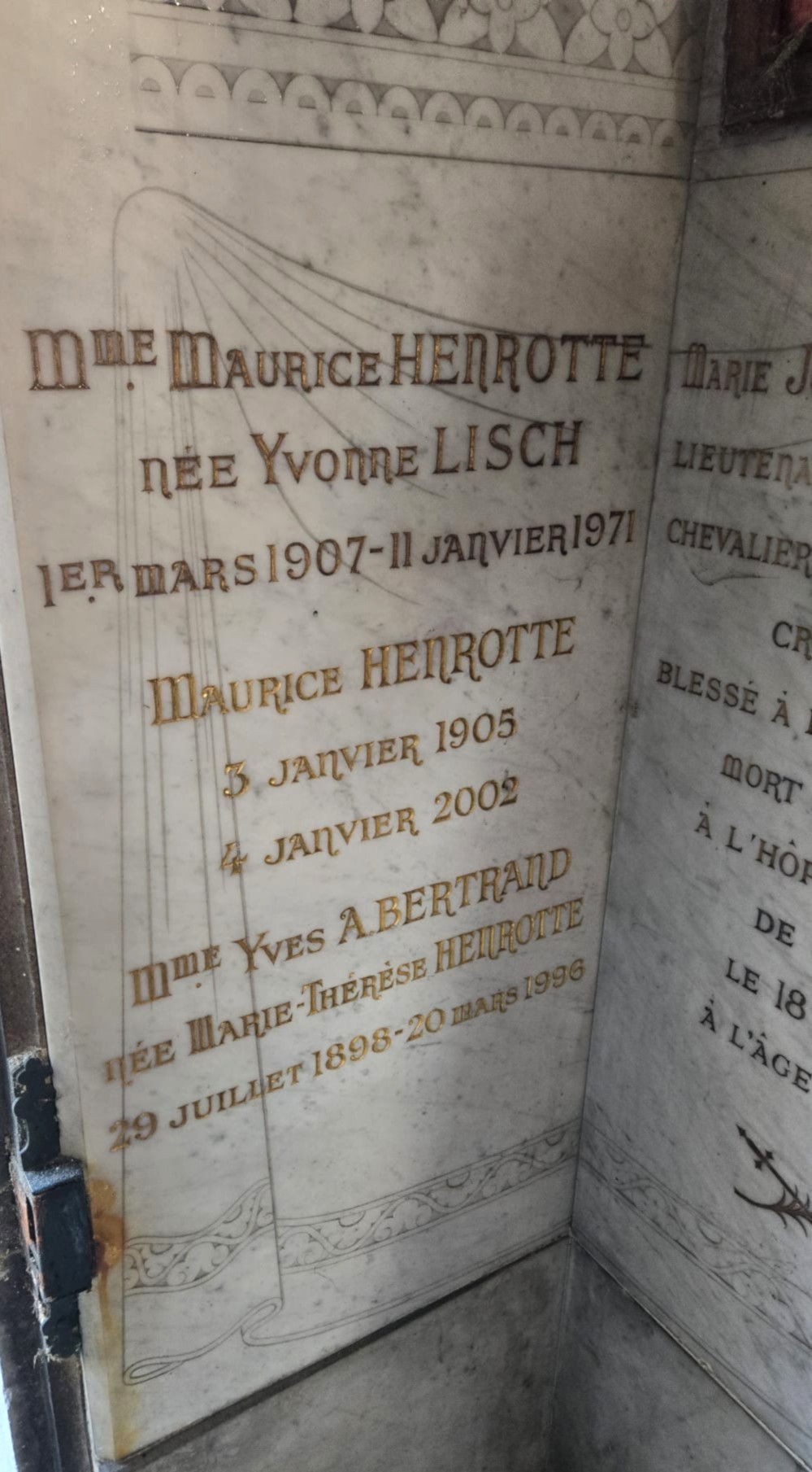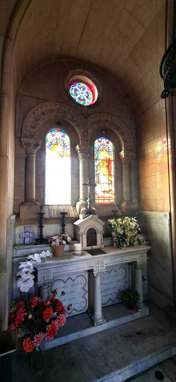 Il ne reste donc plus que cette chapelle en mémoire de la famille Henrotte à Colombes ainsi que des vestiges au musée de colombes. Nous avons eu pendant de nombreuses années un buste en marbre de Jean Joseph dans l’entrée de notre appartement de Boulogne. Je me souviens qu’il faisait partie de notre quotidien et petites avec nathalie nous lui disions parfois bonjour, il nous était familier, jusqu’au jour où tu l’as cédé au musée.
