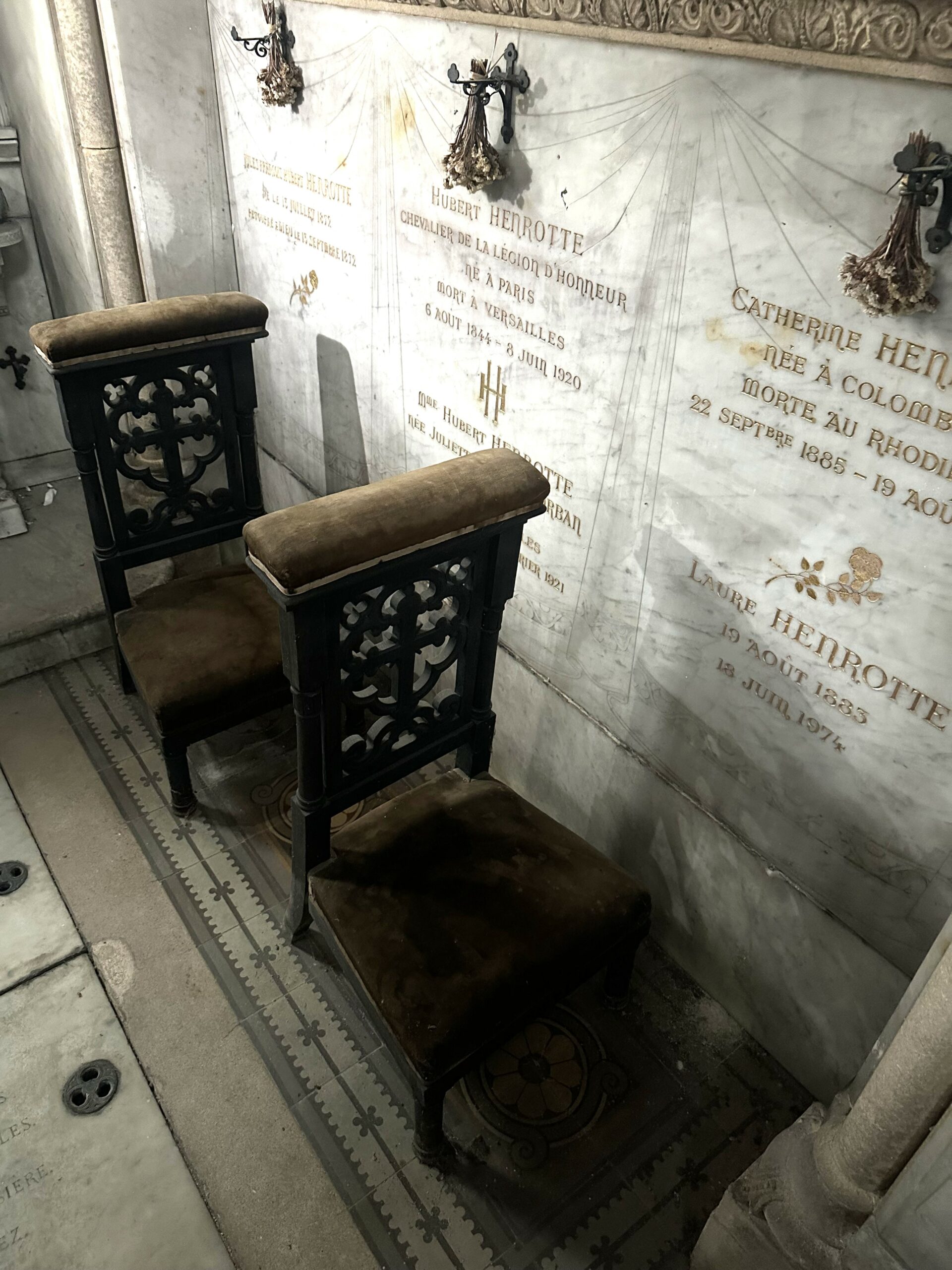 À l’image de nombreux banquiers parisiens, la famille dissocie lieux d’activité professionnelle (Paris, quartiers financiers) et lieux de résidence ou de villégiature en proche banlieue. À Colombes, elle fait construire aussi une chapelle funéraire familiale datant de 1856 au cimetière de Colombe, marqueur social et mémoriel de son implantation locale. Nous y sommes et c’est là que tu souhaitais y résider après ta mort avec une place encore pour maman plus tard et une place pour moi.